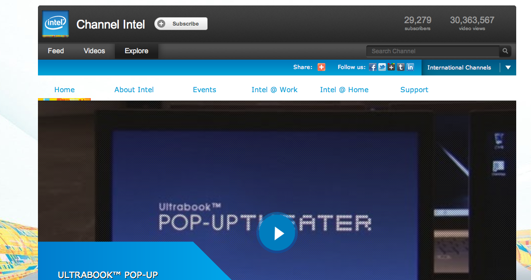 Intel’s YouTube page has generated over 30 million video views, thirty three thousand video subscribers, and they have uploaded more than 3,300 videos. Undoubtedly, YouTube users are finding their page relevant and actually want to be notified of new videos posted by Intel. So what can we learn from them?