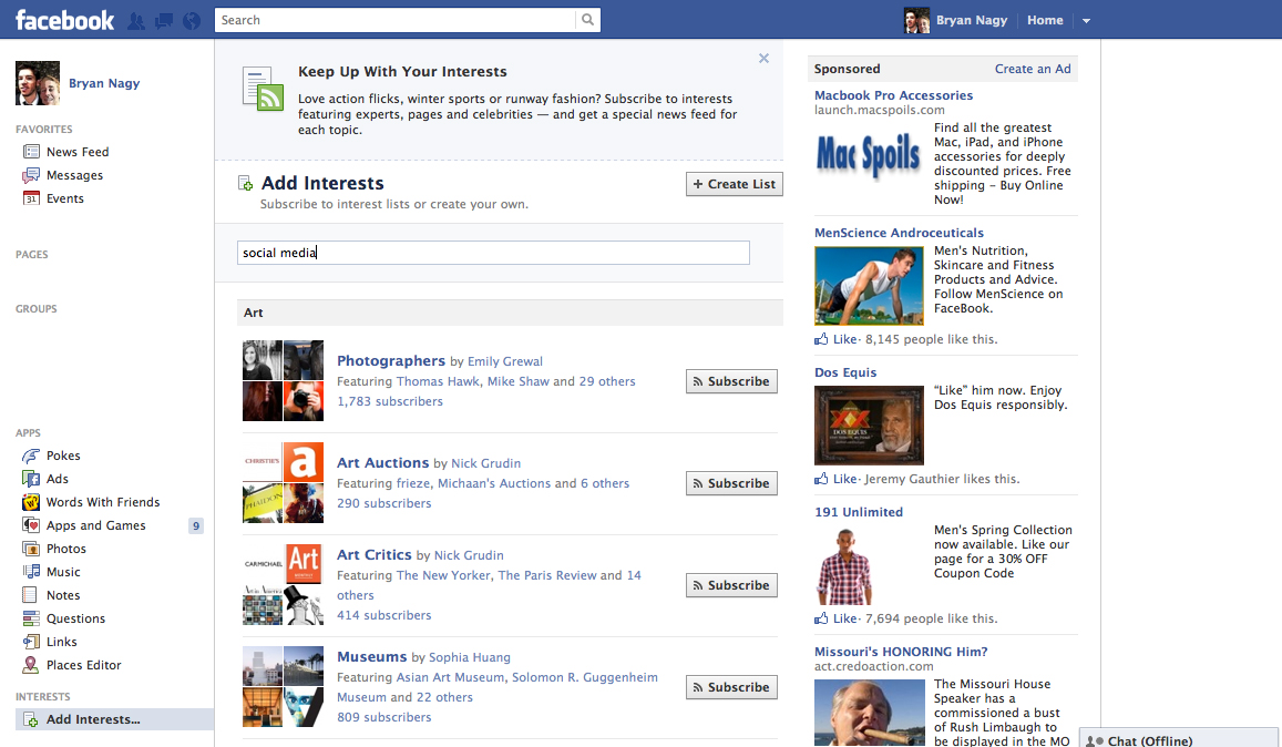 Facebook Introduces Interest Lists