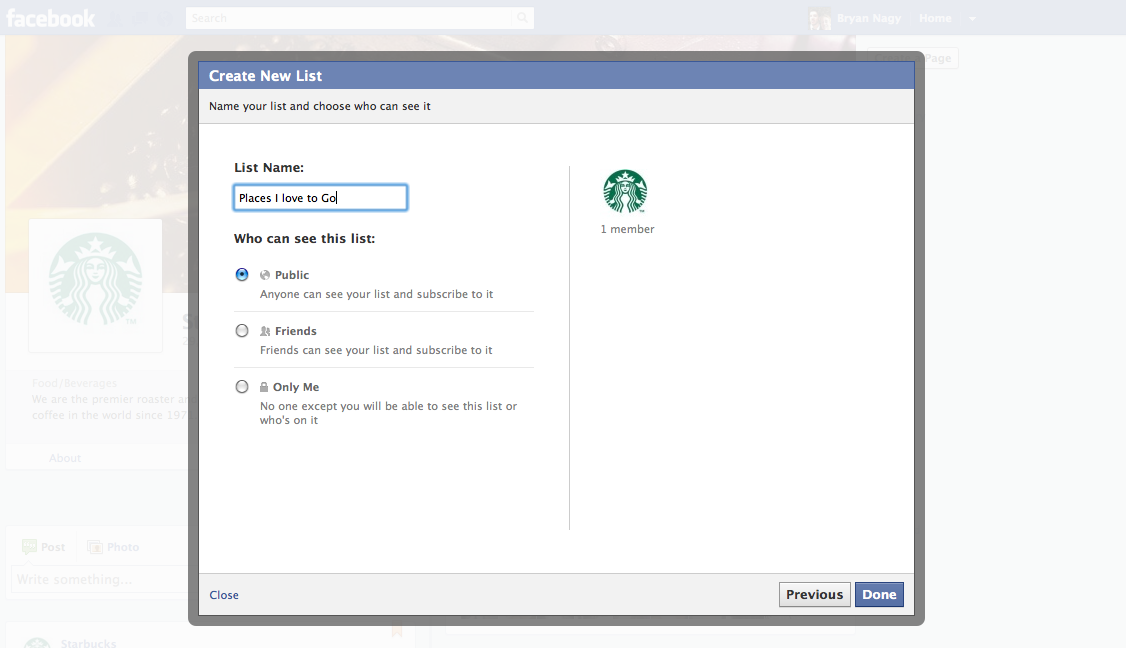 A user can name the list anything they want and choose who they want to have see the list. Once they are done, they can view their list in their news feed: