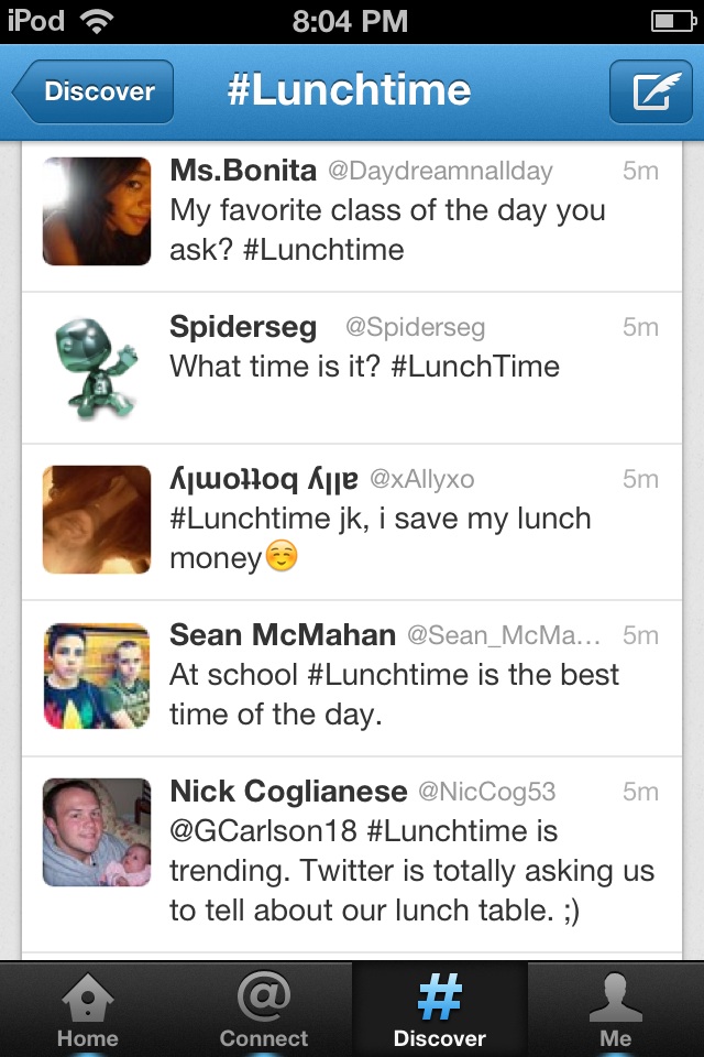 Well, it looks like McDonald’s didn’t run into too much problems with their #Lunchtime promoted trend on Twitter today. Discussion around the #Lunchtime hashtag generally revolved around teens talking about lunchtime in their schools, something that I’m sure wasn’t necessarily in McDonald’s hope for the hashtag.