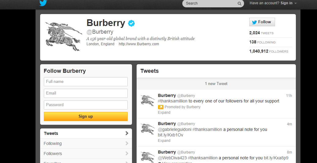 Marketing Spotlight – Burberry Continues its Twitter Marketing with #thanksamillion