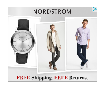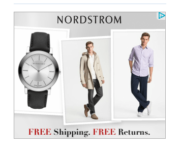 Guess what? Each one of those items were from images I had just pinned on Pinterest minutes earlier. That’s right, I’m not sure of the vendor behind the technology, but this ad was actually able to recognize what items from Nordstrom I had pinned on Pinterest and place these images into the ad unit retargeted to me. (At least- this is what I can tell- it could just be that Nordstrom lucked out and chose the items at random from the pages I visited.) On top of that, each item has its own link in the ad unit, and if you click on it, it takes you directly to that item’s page on Nordstrom, ready for you to check out.