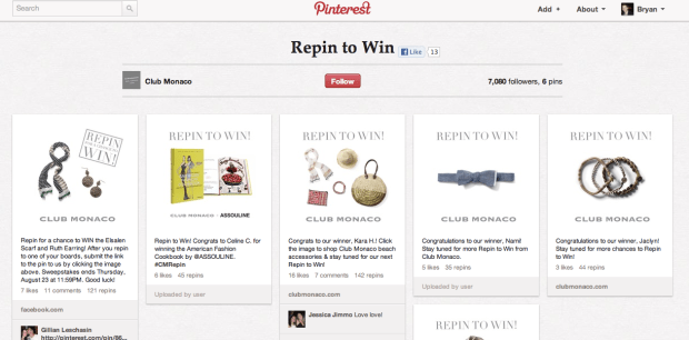 MARKETING SPOTLIGHT – Club Monaco Joins the Pinterest Contest Bandwagon