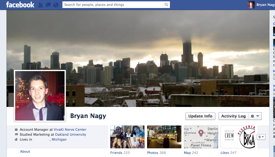 Currently the bar is filled with photo links to a user’s Facebook apps, including friends, photos, likes, and a check-in map. These photos display a previews of each link. For example, for “likes” the link shows the photos of the two most recent Facebook pages the user liked. This is all changing. The new Timeline updates these into text links that are featured in a more compact bar, as shown below.
