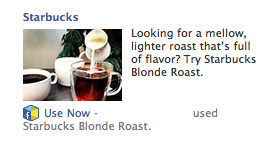 Starbucks also ran Facebook ads to drive users to its blonde roast Facebook app and increase product awareness among fans who had not seen Starbucks’ posts in their newsfeeds.