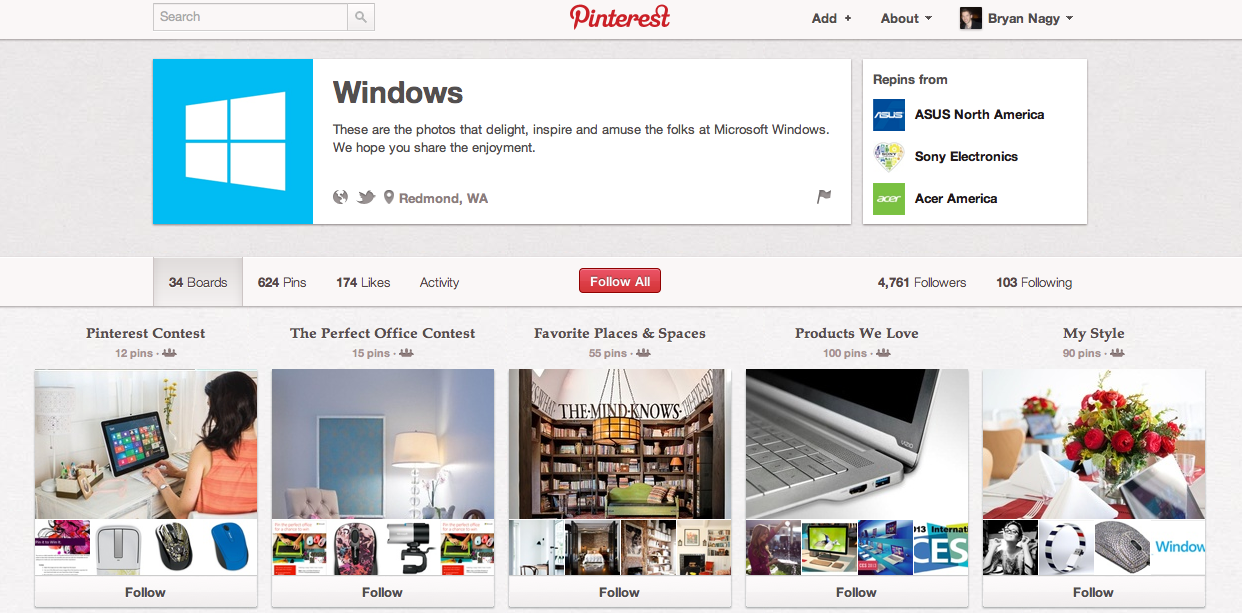 The Windows Pinterest contests symbolizes that not only clothing companies can succeed on Pinterest. As brands get more traction on Pinterest and support through paid advertising opportunities on Pinterest, we will see more exposure to brands like this. Given the large user base on Pinterest, it will be essential for brands to create this social networking site a part of their digital marketing plans.
