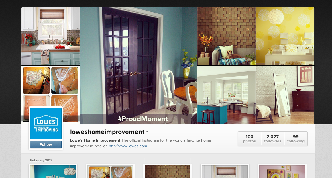 Home improvement store Lowe’s looked to app-turned-social-network Instagram for its latest marketing tactic. Dedicated solely to the Instagram platform, the campaign is part of a long-tail marketing effort to reach customers in a wide range of online and mobile environments.