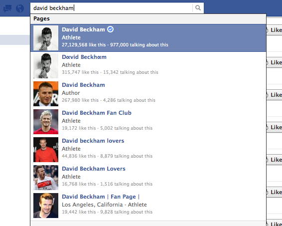 Users who have their Facebook Page verified by Facebook will receive a blue check mark next to their name. This bears an uncanny resemblance to the verified product Twitter has, in which verified tweeters are provided a very similar blue check mark on their Twitter profile.