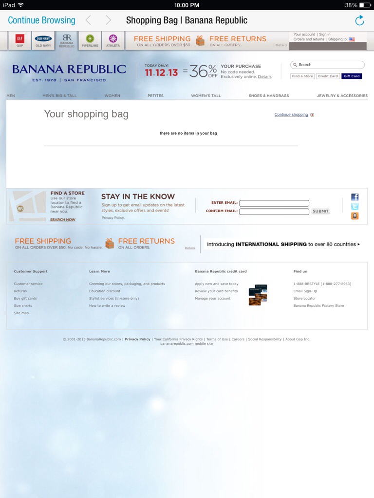 In Banana Republic’s case, the company created a variety of different magazines. For example, they have one magazine called the “black-and-white shop”. The Banana Republic black-and-white shop magazine shares various content about their latest black-and-white products and also provides related lifestyle links. From a product standpoint, the catalogue shared black-and-white products from BananaRepublic.com, including white striped purses, black blazers, and grey duffel bags. From a lifestyle standpoint, Banana Republic provided a link to information about black-and-white Thanksgiving decor ideas. Other Banana Republic magazines include the print shop, the deluxe shop, the ski shop, the candy shop, the plaid shop, and the shimmer shop. Each magazine contains products and lifestyle tips specific to its theme.