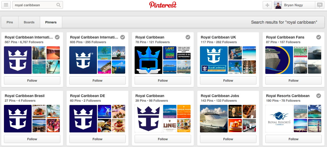 Royal Caribbean has several verified accounts on Pinterest, which can be confusing for consumers. Which one should they follow?